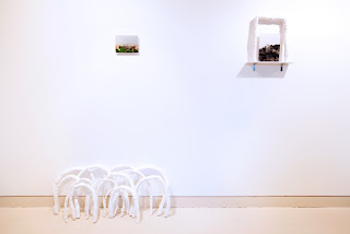 The works of these eight artists are shown together partly because of their common use of black, white or tones in between, and because their interaction with each other and the surrounding architecture will be akin to a dramatic black and white drawing in space. Individually the works use a variety of materials including plasticine, paper, neon, graphite and wool, and explore a variety of subjects such as poetry, ancient architecture, ordinaria, drawing and time, and it is hoped that their location together will give a voice to the immediate architecture as well.